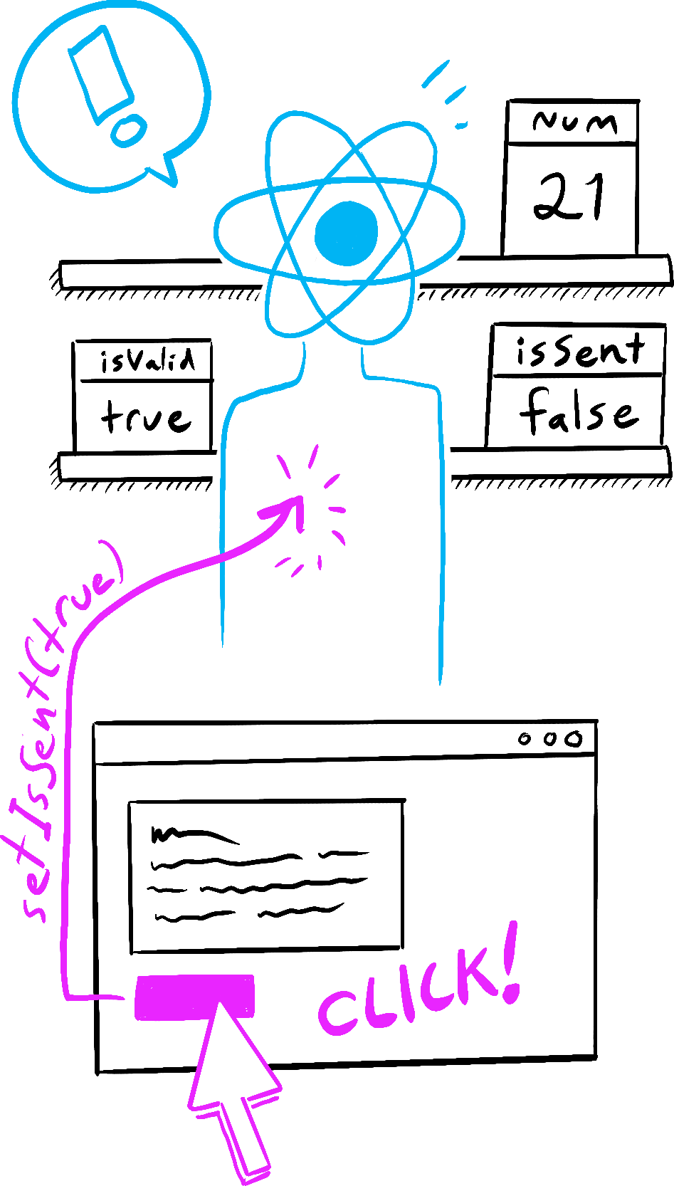 onSubmit事件处理函数。 setIsSent(true)将isSent设置为true并排列一个新的渲染。- React 根据新的